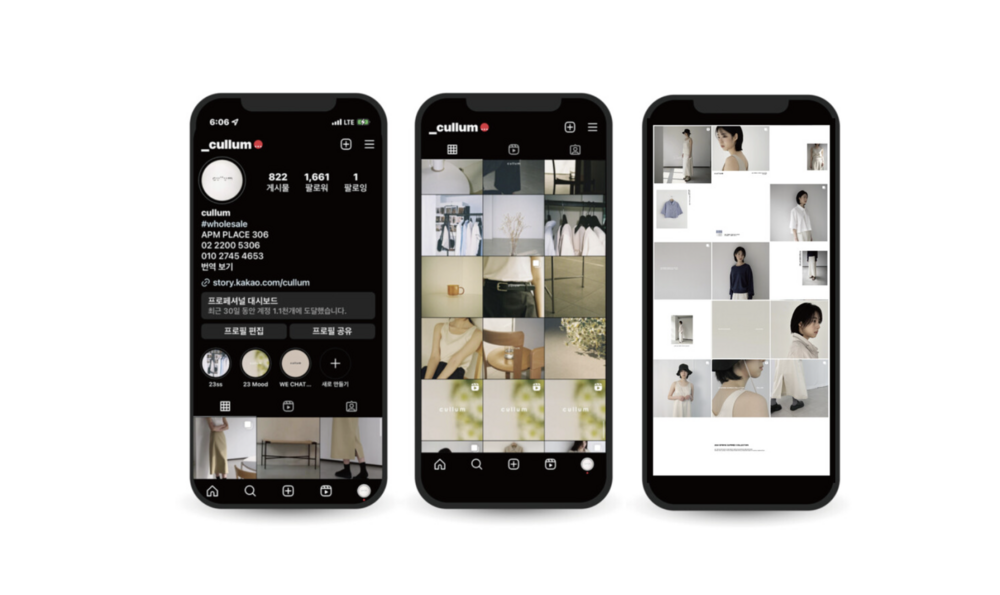 여성 홀세일 브랜드 컬럼의 인스타그램 콘텐츠를 정기적으로 기획, 제작했습니다. 제품만 강조된 부자연스러운 이미지가 아닌 제품의 무드를 보여줄 수 있는 다양한 사진과 영상 컨텐츠를 제작하여 브랜드가 추구하는 이미지를 전달 할 수 있도록 컨텐츠를 제작하였습니다.